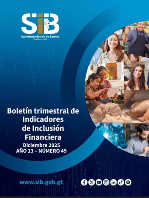 Además de ese indicador, para medir el avance de la inclusión financiera en Guatemala, se han utilizado otros indicadores publicados por la SIB tanto en el Boletín Trimestral de Indicadores de Inclusión Financiera como en el Boletín Semestral de Estadísticas Financieras por Género. Estos boletines, alineados con las mejores prácticas internacionales, presentan información estadística detallada sobre aspectos como, cantidad de puntos de acceso, número de cuentas de depósitos, cantidad y monto de créditos, cantidad y montos de crédito por actividad económica, tasas de interés activas, morosidad, garantías que respaldan los créditos, entre otros.