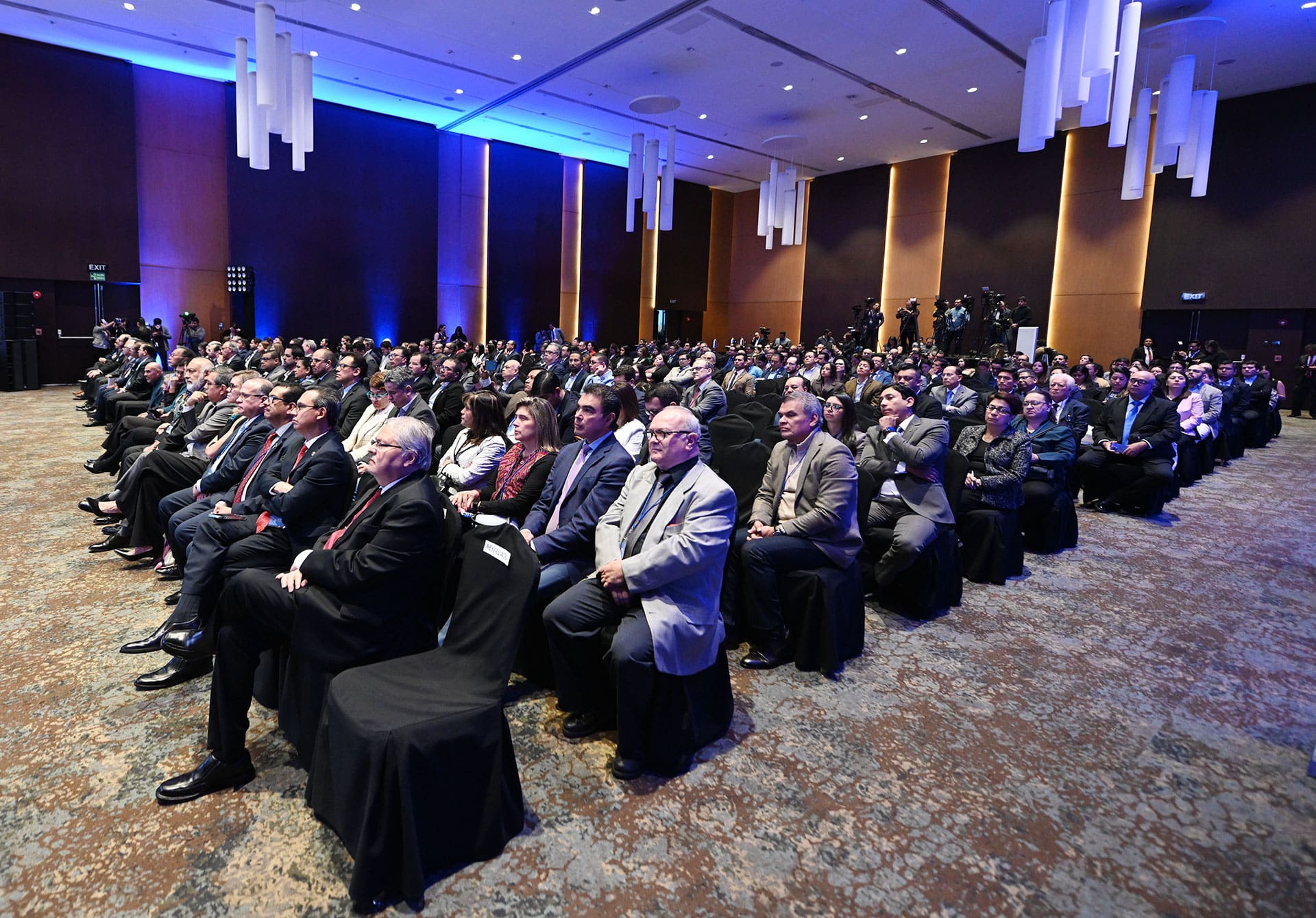 Autoridades del Banco de Guatemala: Gerente Jurídico, licenciado Leonel Moreno; Gerente General, licenciado Vinicio Cáceres; Gerente Financiero, licenciado William Cano; Presidente de la Junta Monetaria y del Banco de Guatemala, licenciado Alvaro González Ricci; y Vicepresidente, licenciado Alfredo Blanco.